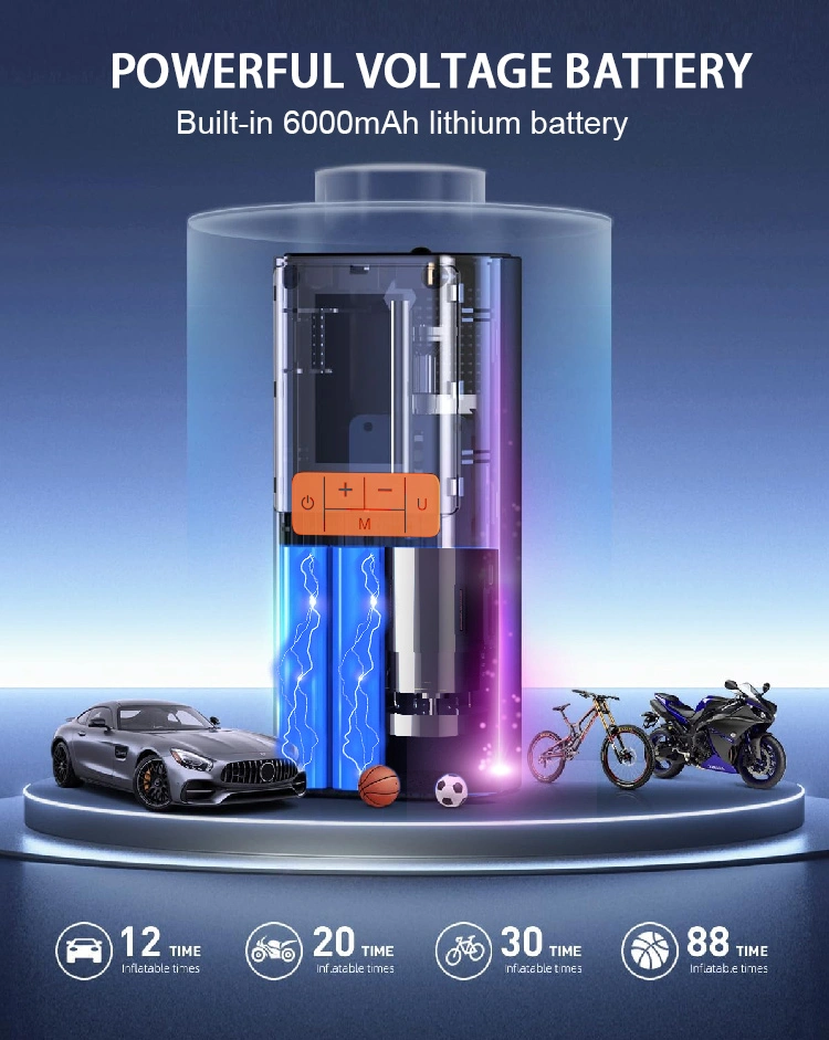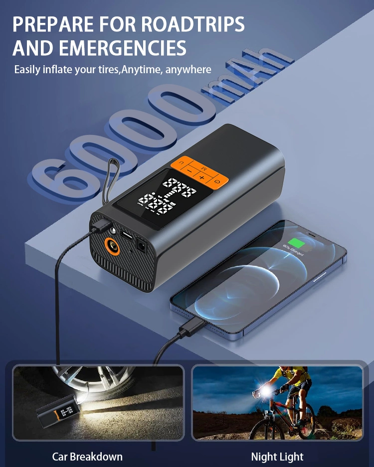 Function | Emergency Light, Power Indicator, Tire inflator pump, LED lighting, Fast charging |
